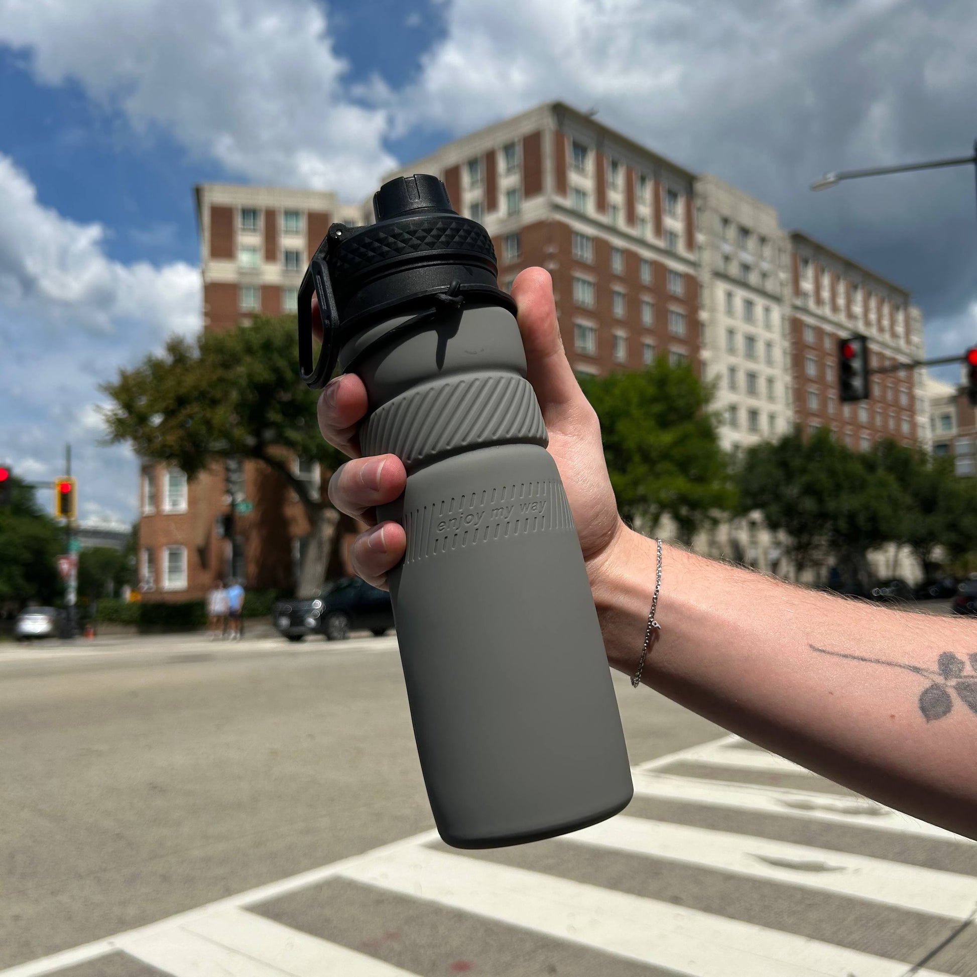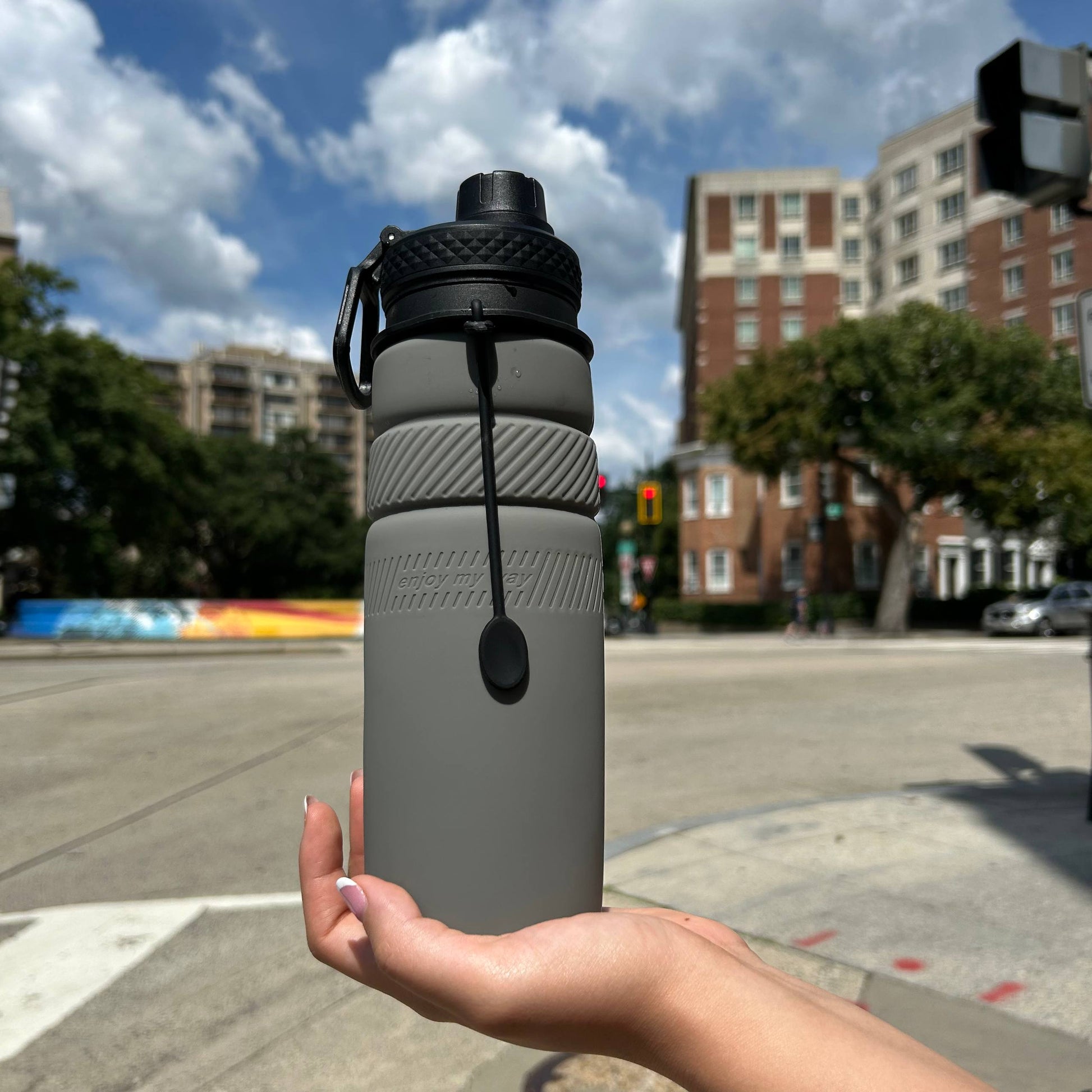 FOLD holds up to 750ml of liquid, providing ample capacity for hydration during extended activities like hiking, workouts, or travel. Its durable and flexible silicone body is engineered to expand and contract under pressure, maintaining structural integrity when filled.